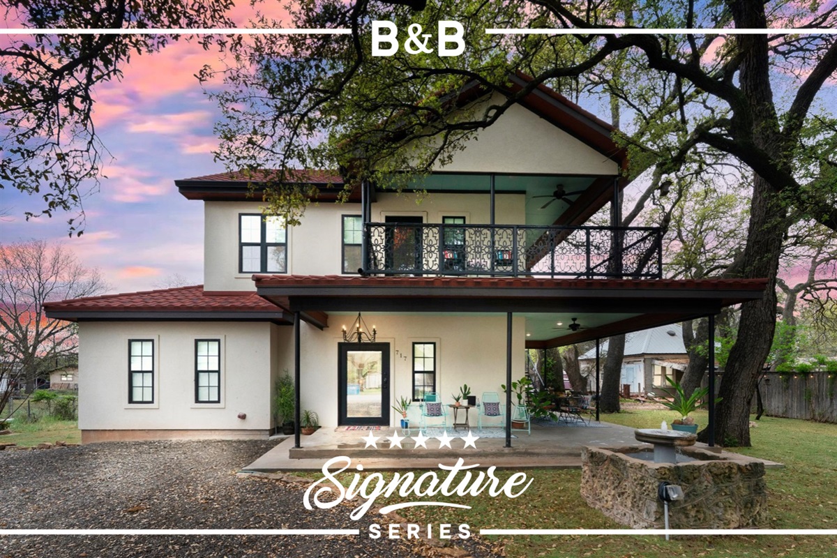 2 Bedrooms • 3 Bathrooms 3 Baths • Sleeps 2-4Welcome to the Boho Buffalo, a stunning two-story retreat nestled beneath majestic oak trees in charming Buffalo Gap! This stylish 2-bedroom, 2.5-bathroom home beautifully blends modern comfort with bohemian flair, creating a unique Texas getaway that feels both luxurious and laid-back.