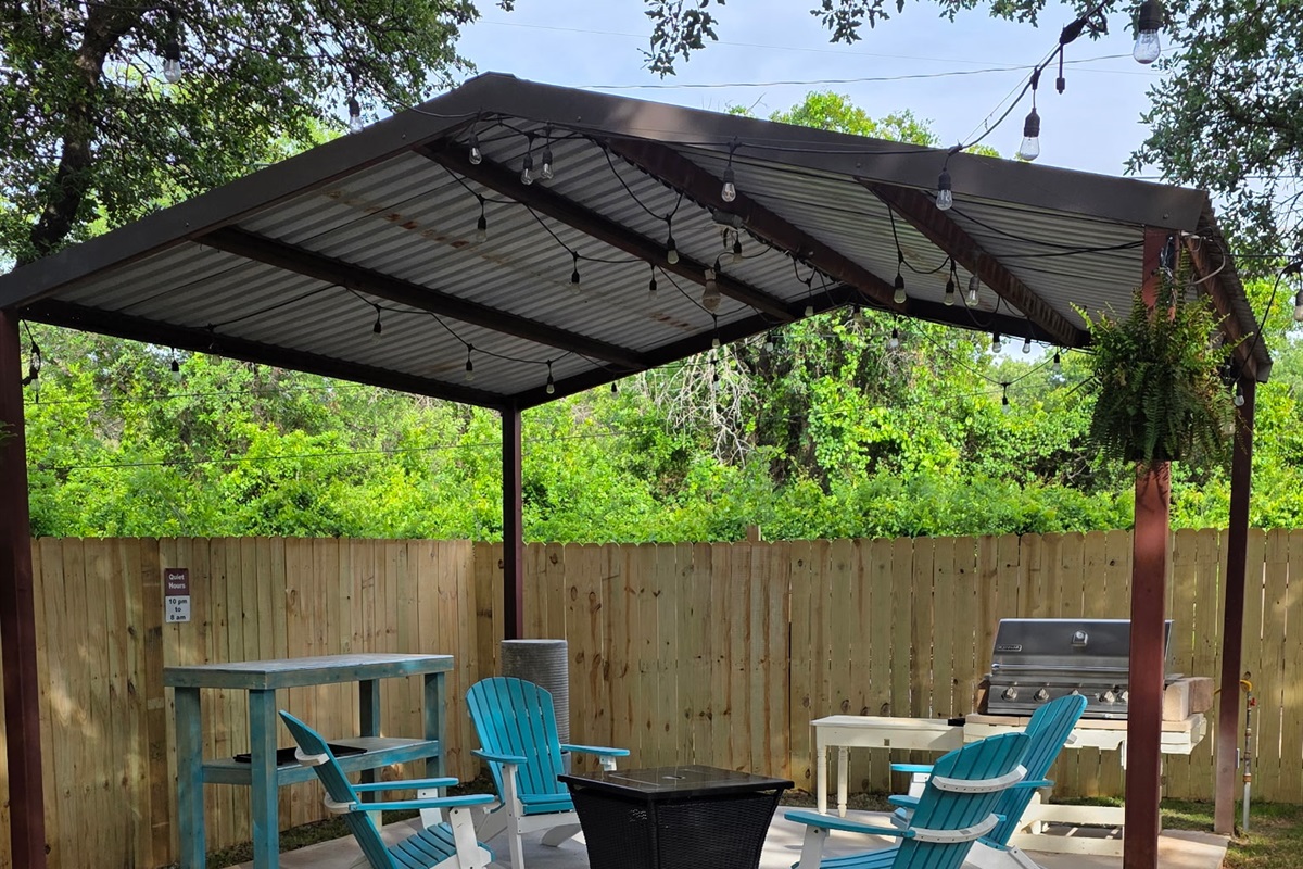 Covered pavilion with outdoor dining table