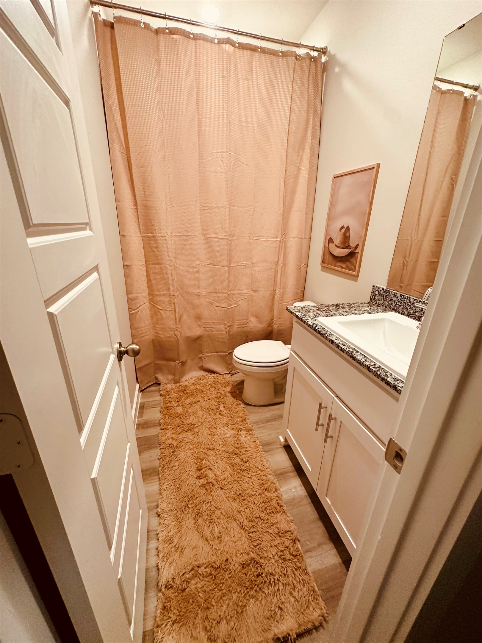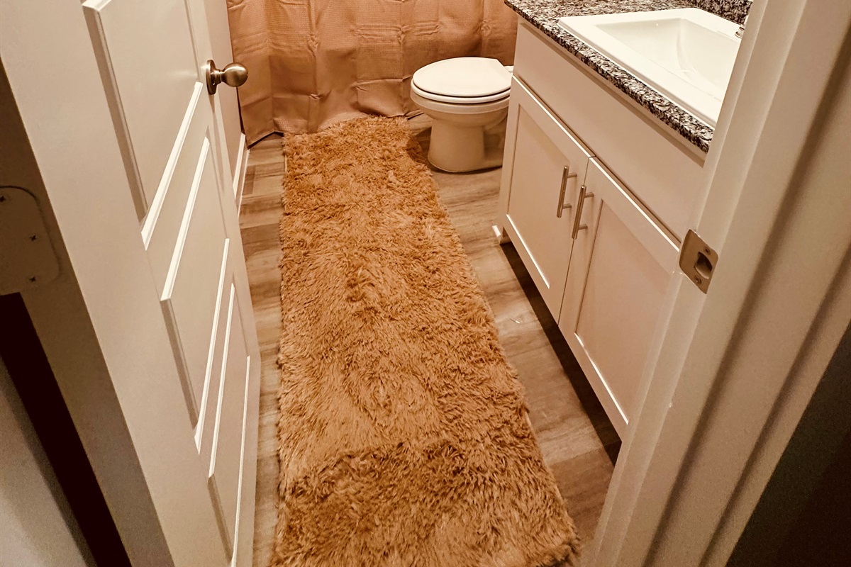 Mornings flow smoothly with dual bathrooms eliminating bottlenecks. The updated bathrooms showcase speckled granite vanities, white cabinetry with satin nickel hardware, and neutral tile work. Tub/shower combinations come equipped with curved rods maximizing elbow room. Plush bath mats cushion bare feet, while fresh towels stack neatly awaiting your arrival.