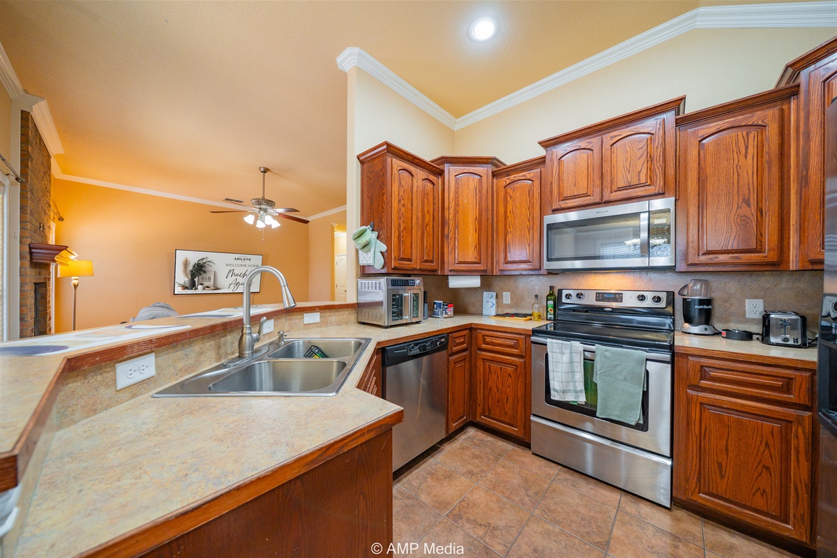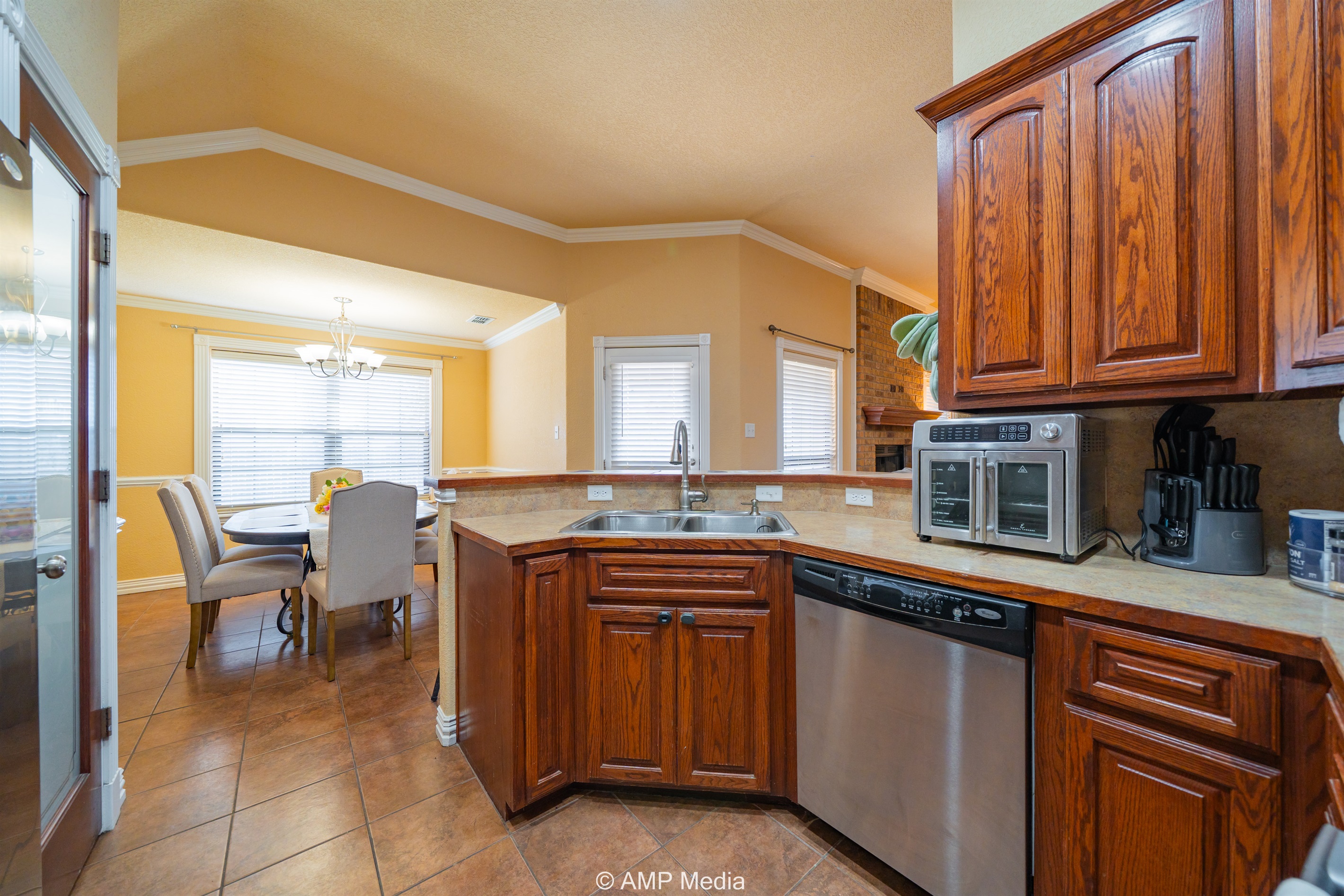 Located in a peaceful residential neighborhood at 4809 Many Waters, this charming home features an open-concept living design that seamlessly connects the kitchen, dining, and living areas—perfect for gathering with loved ones. The warm peach and cream color palette throughout creates an inviting atmosphere that makes you feel at home from the moment you arrive.